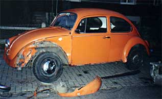 dieser käfer gehörte einem freund, der von einem alkoholisierten autofahrer im wahrsten sinne abgeschossen wurde, die substanz war schon so schlecht, dass ich ihn als ersatzteillager verkauft habe