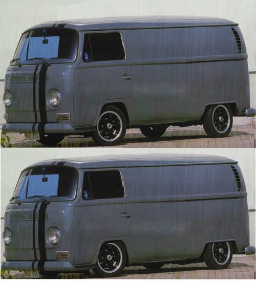 vw bus t2, tiefergelegt, (aus vw-magazin gescannt)