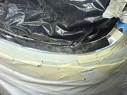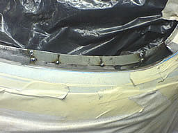 der unterboden hinter dem linken vorderrad, war auch fällig zu erneuern, leider nicht nur die aussenhaut, sondern die innere verstrebung auch